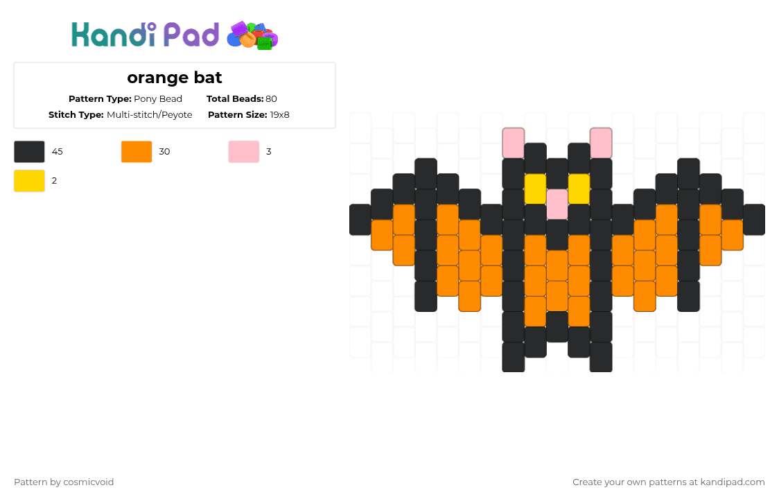Orange bat Pony Bead Pattern - Kandi Pad | Kandi Patterns, Fuse Bead ...