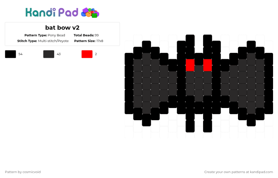 Bat bow v2 Pony Bead Pattern - Kandi Pad | Kandi Patterns, Fuse Bead ...