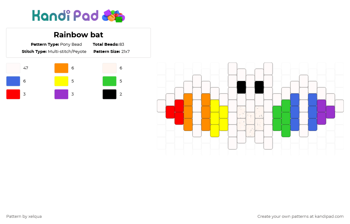 Rainbow bat Pony Bead Pattern - Kandi Pad | Kandi Patterns, Fuse Bead ...