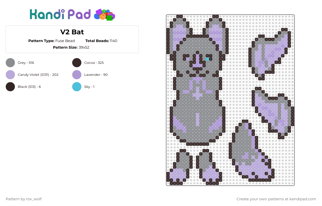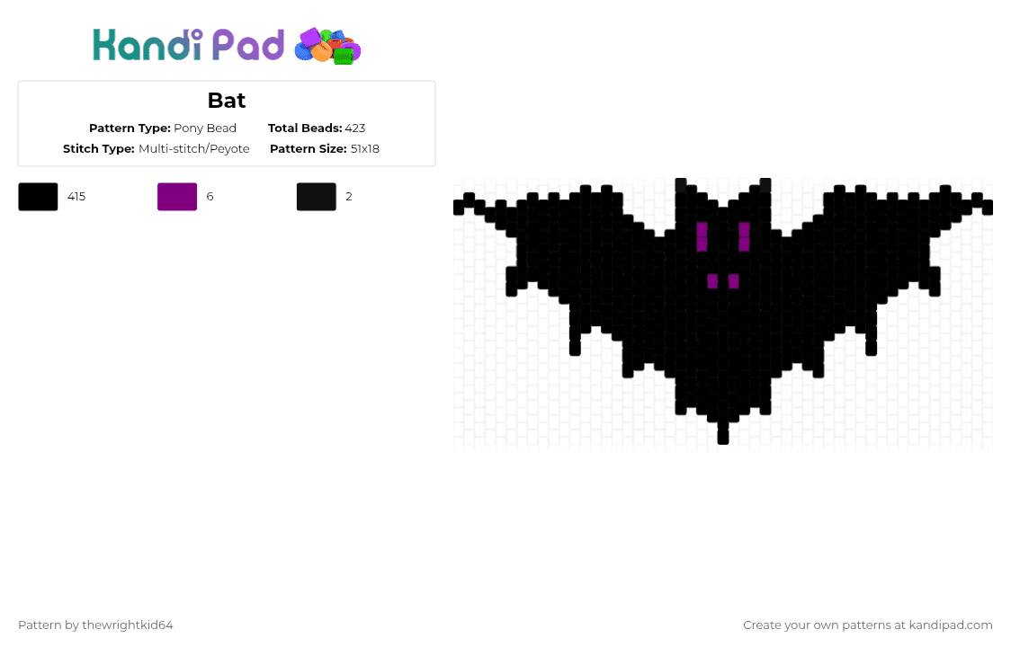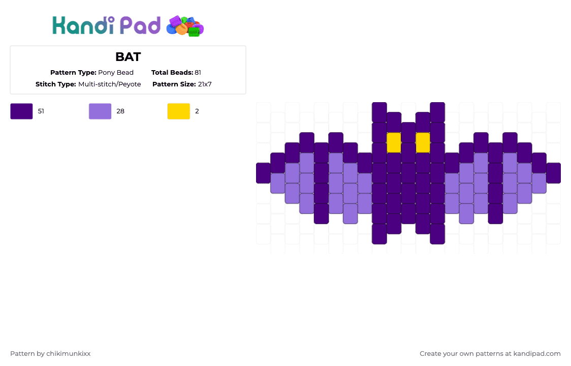 Dark purple bat Pony Bead Pattern - Kandi Pad | Kandi Patterns, Fuse ...