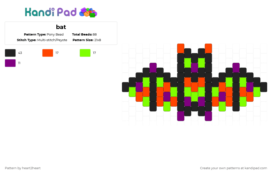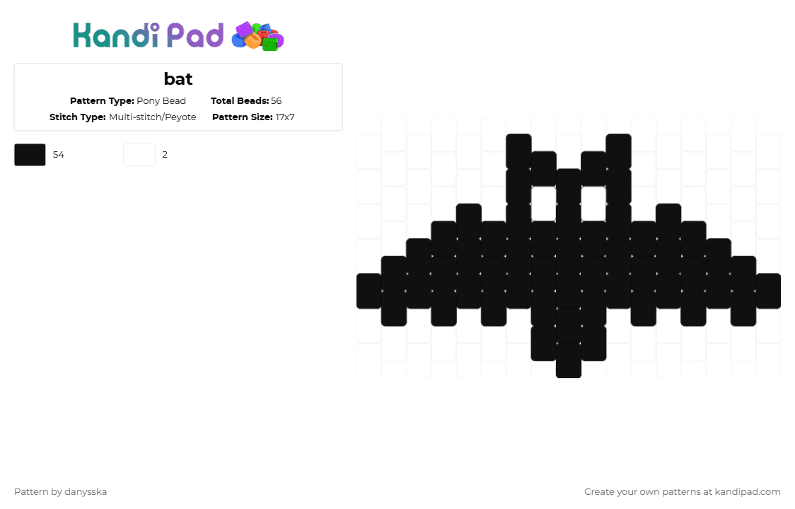 Bat 2 Pony Bead Pattern - Kandi Pad | Kandi Patterns, Fuse Bead ...