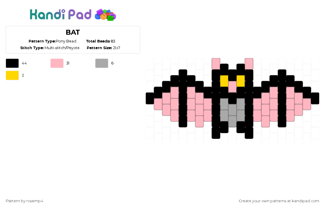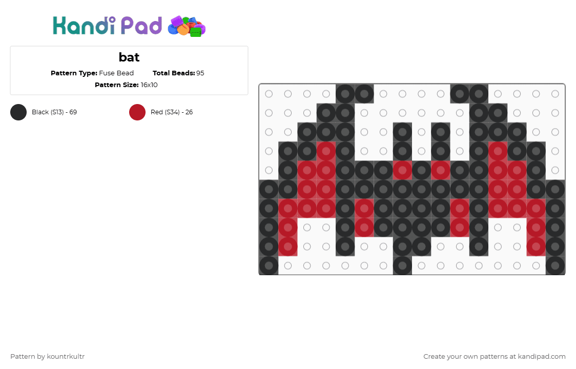 Neptunic bat Pony Bead Pattern - Kandi Pad | Kandi Patterns, Fuse Bead ...
