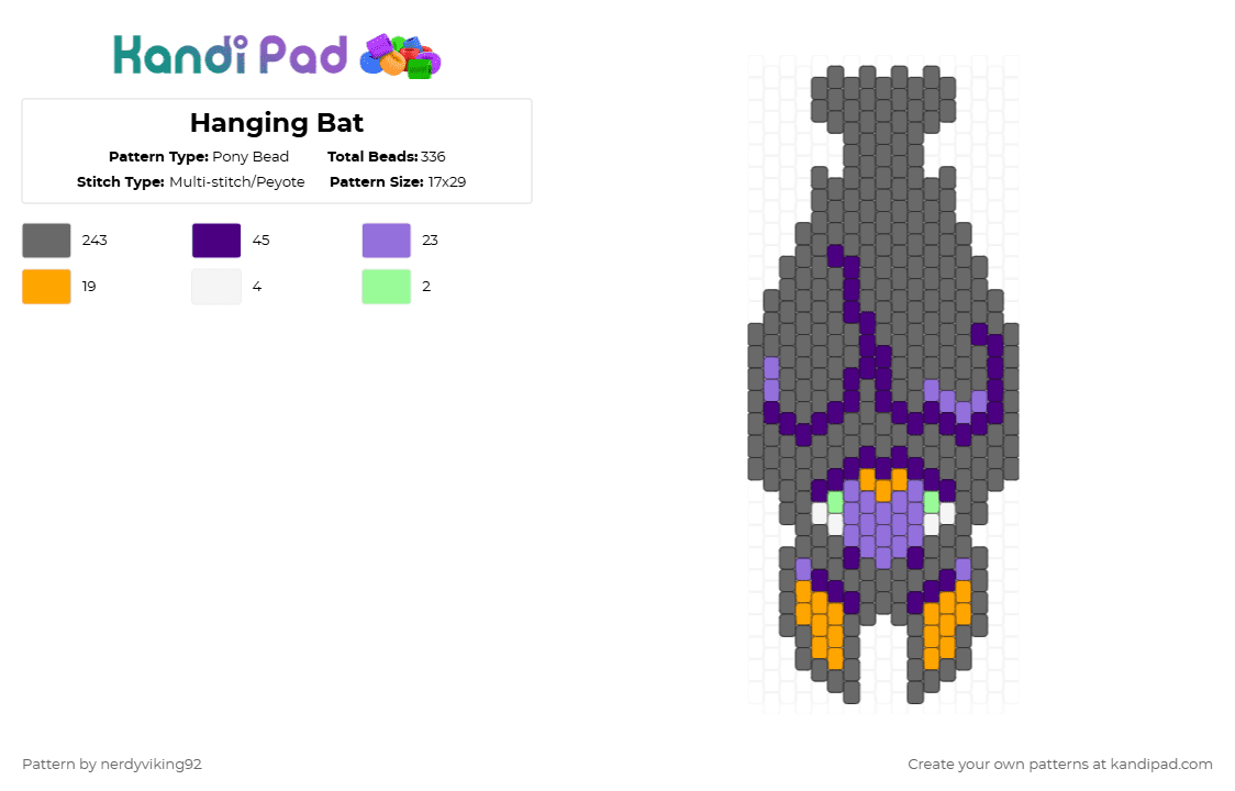 Hanging Bat Pony Bead Pattern - Kandi Pad | Kandi Patterns, Fuse Bead ...