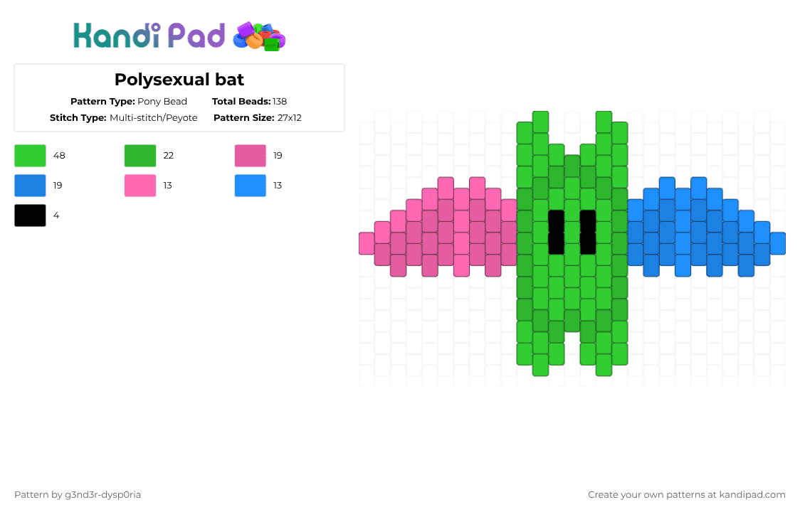 Polysexual bat Pony Bead Pattern - Kandi Pad | Kandi Patterns, Fuse ...