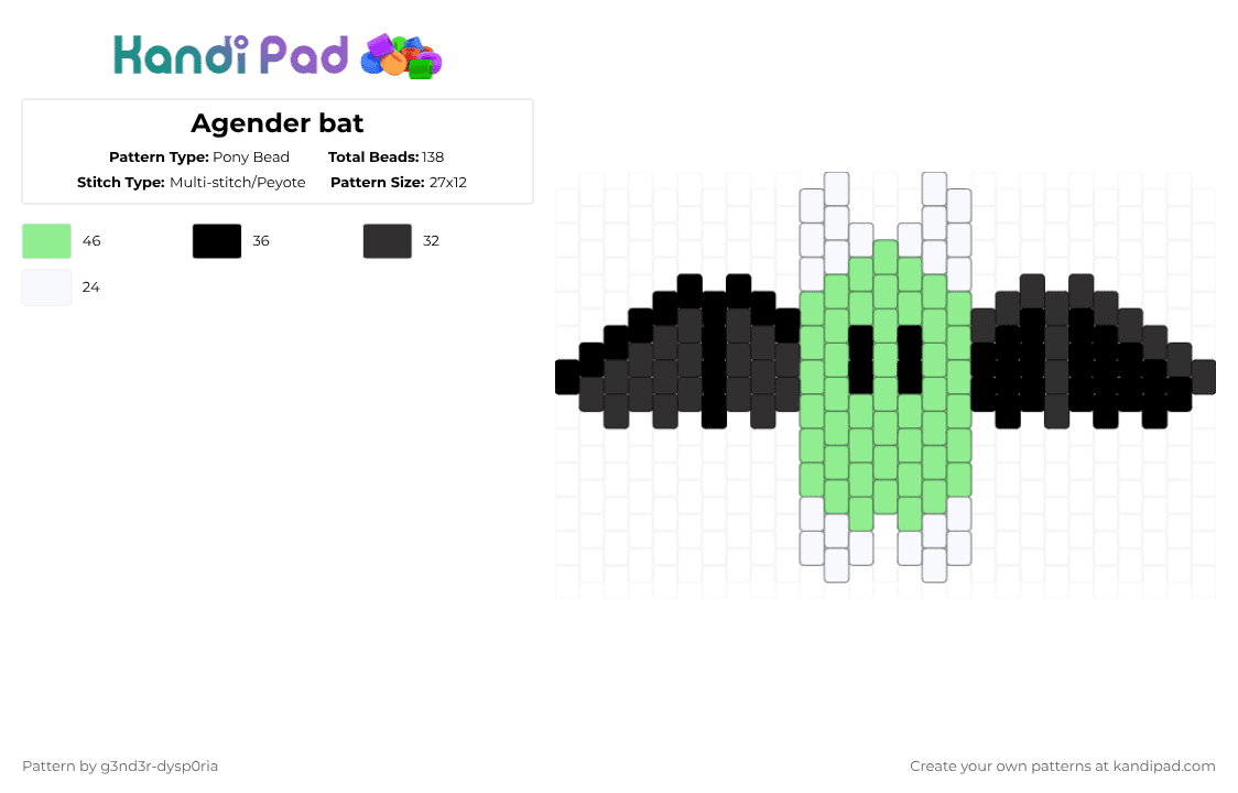 Agender bat Pony Bead Pattern - Kandi Pad | Kandi Patterns, Fuse Bead ...