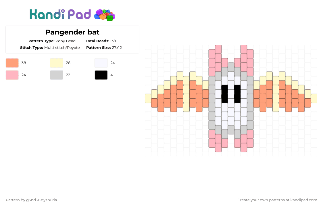 Pangender bat Pony Bead Pattern - Kandi Pad | Kandi Patterns, Fuse Bead ...