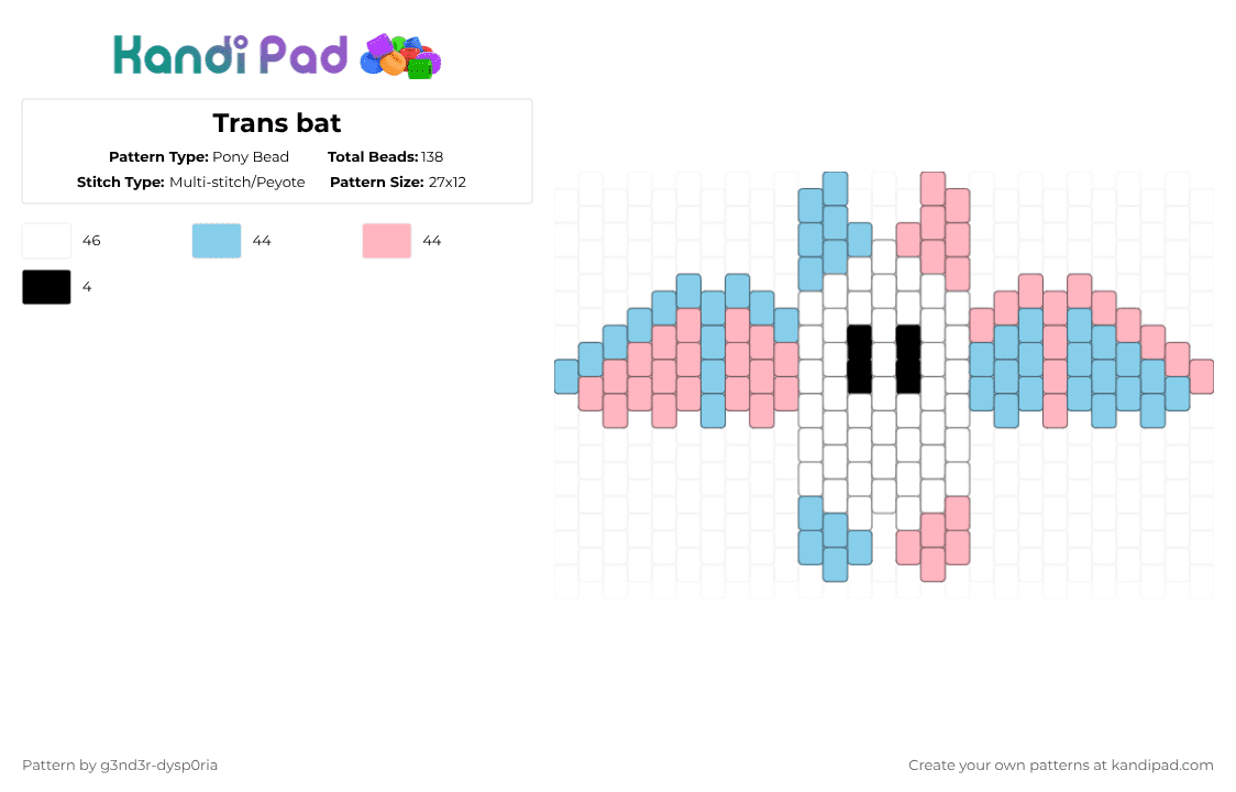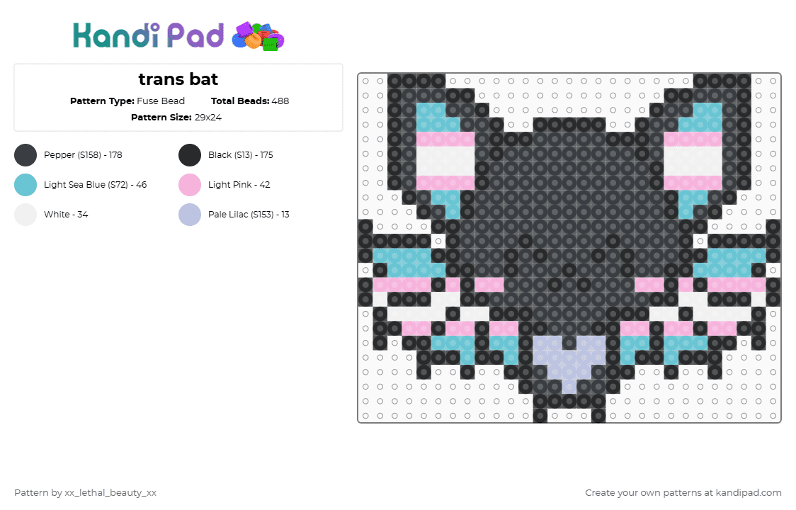 Trans bat Pony Bead Pattern - Kandi Pad | Kandi Patterns, Fuse Bead ...