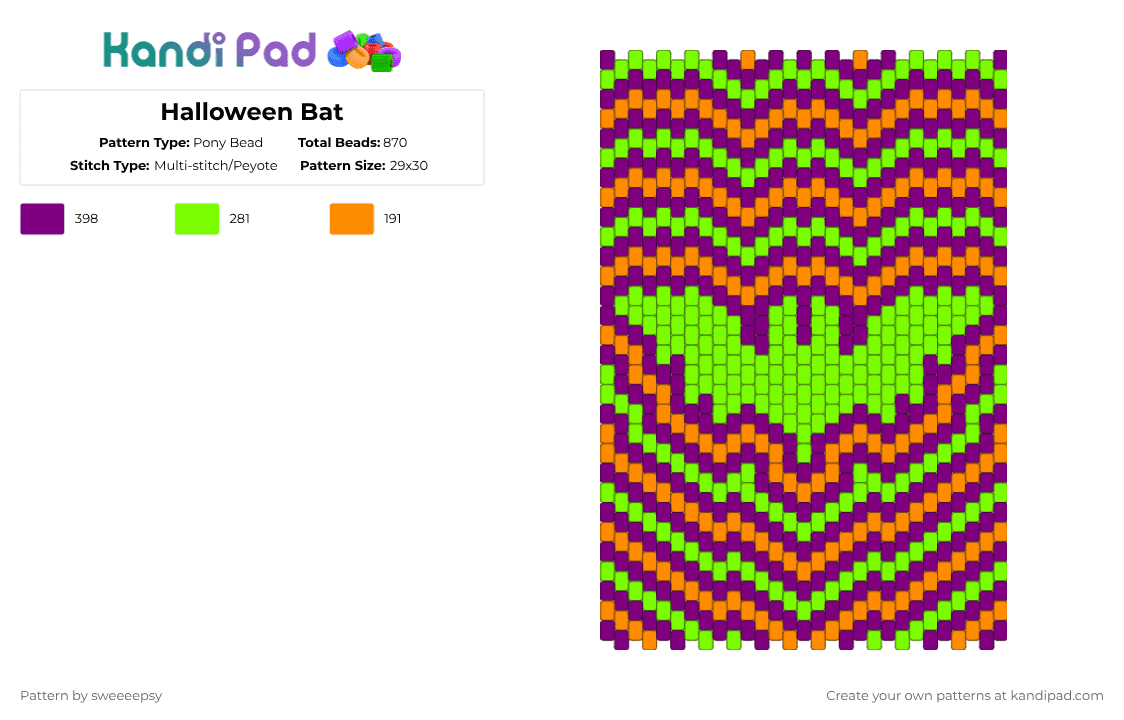 Jackolantern bat v1 Pony Bead Pattern - Kandi Pad | Kandi Patterns ...