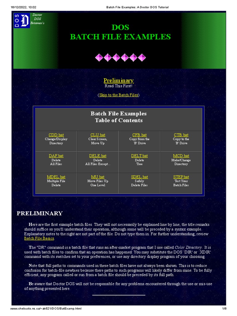 Batch File Examples - A Doctor DOS Tutorial | PDF
