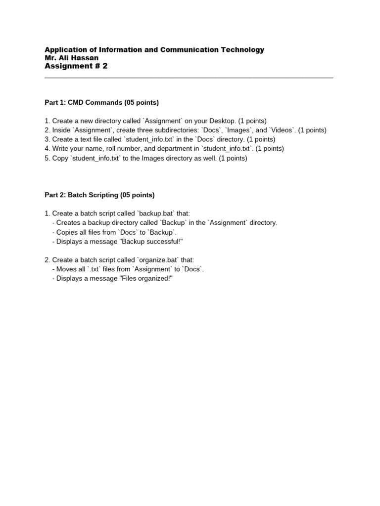 5 Assignment - CMD Commands and Batch Scripting Fundamentals | PDF