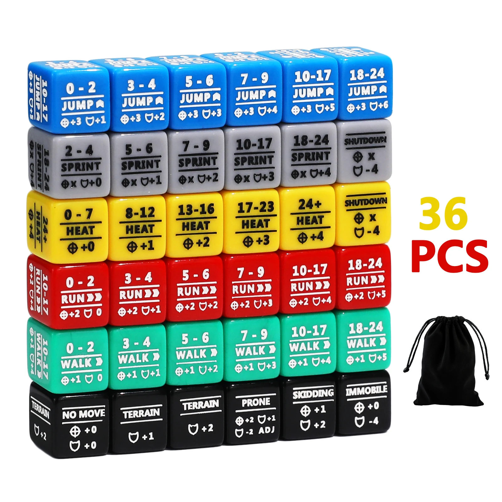 36PCS Mech Game Dice Set - Movement, Heat, Special Stats Modifier ...