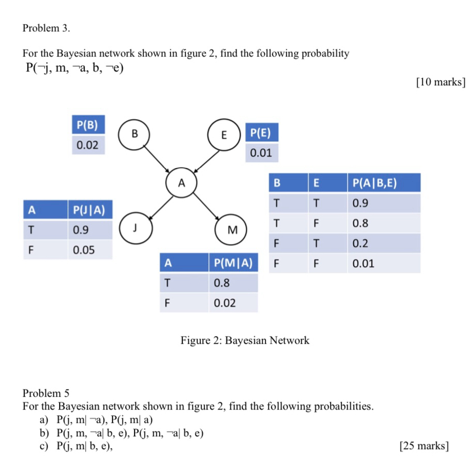 Solved Problem 3.For the Bayesian network shown in figure 2, | Chegg.com
