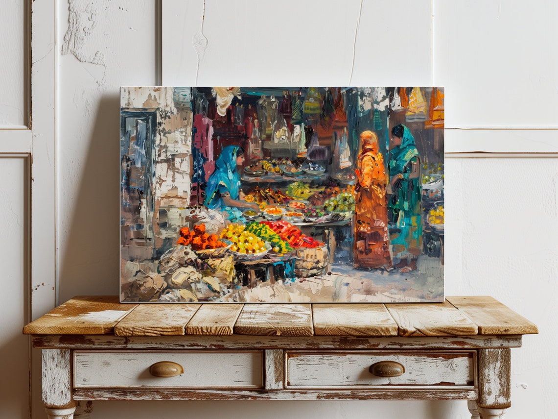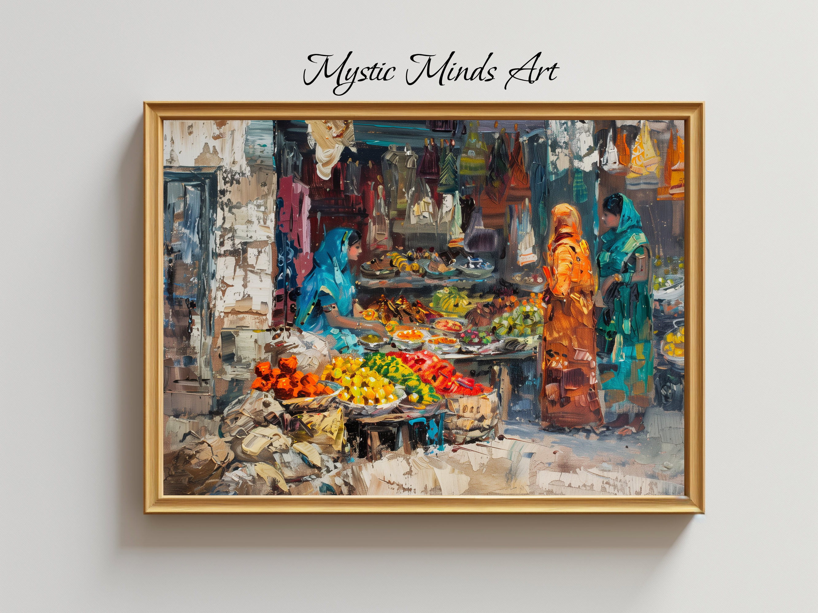 Vibrant Bazaar: Colors of India. Stunning Oil Painting of Indian Street ...