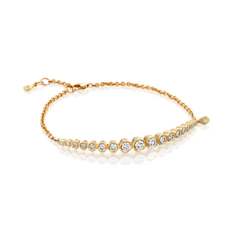 18 Karat Yellow Gold Bezel Set Diamond Tennis Bracelet at 1stDibs ...