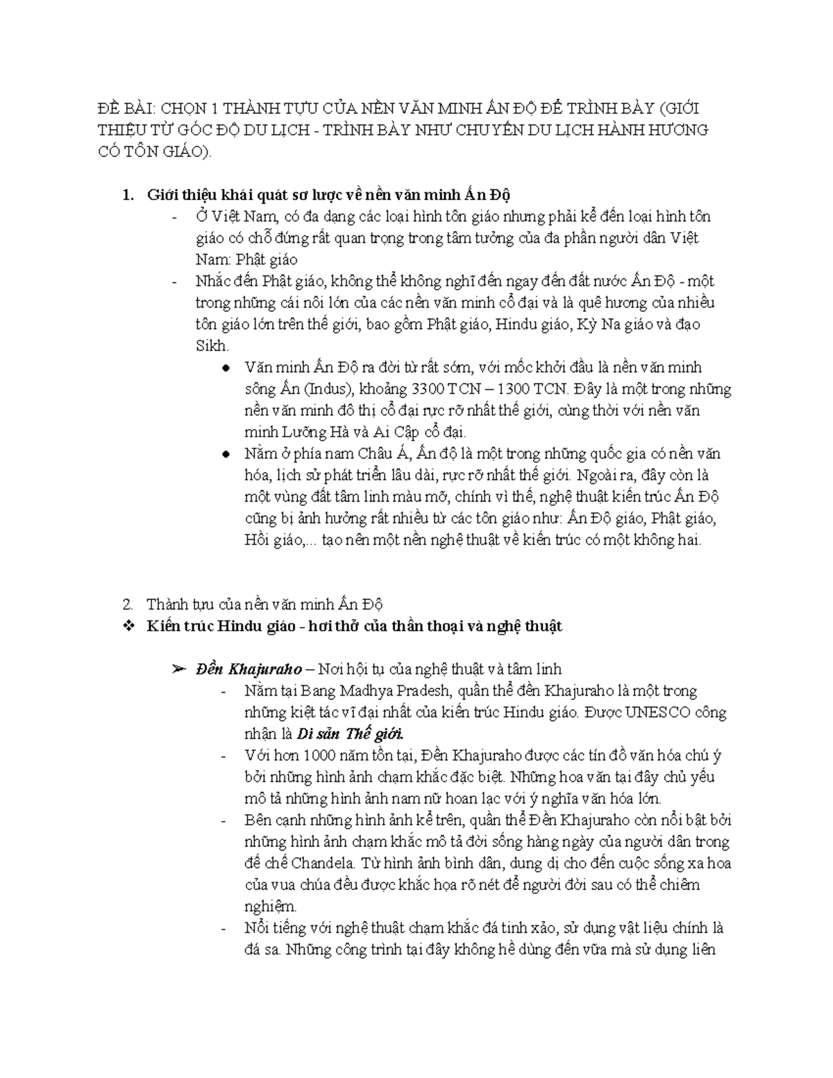 LỊCH SỬ VĂN MINH - bbbbbbbbb - ĐỀ BÀI: CHỌN 1 THÀNH TỰU CỦA NỀN VĂN ...