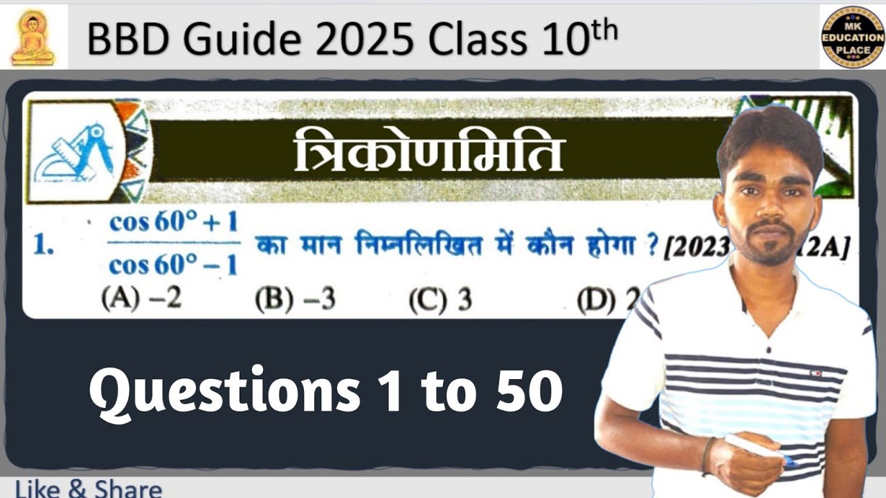त्रिकोणमिति का Objective Question Class 10th | BBD Guide 2025 - YouTube