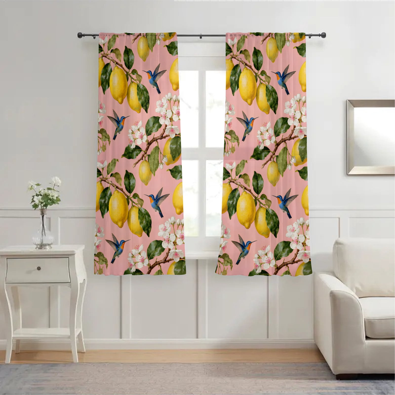 Lemon & Hummingbird Print Sheer Curtains - Light Filtering Voile Drapes ...