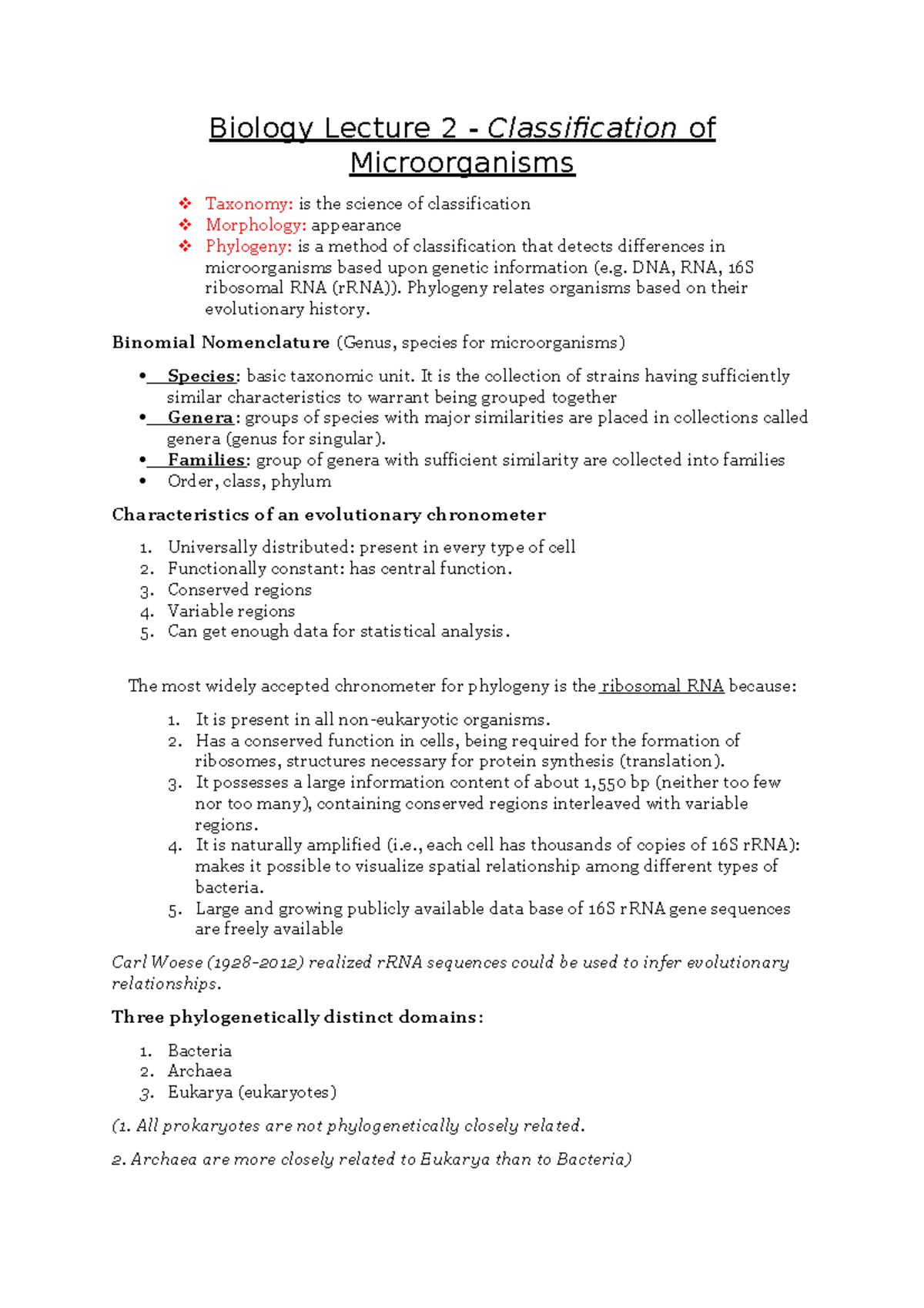 Bio notes 2 - Biology Lecture 2 - Classification of Microorganisms ...