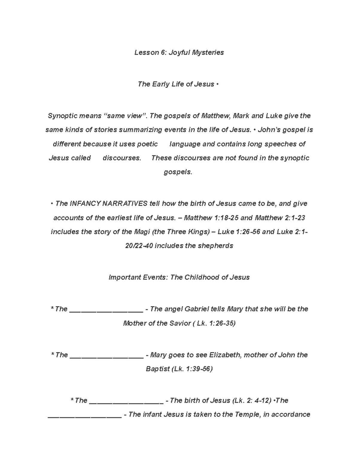 Lesson 6 - Joyful Mysteries Notes - Lesson 6: Joyful Mysteries The ...