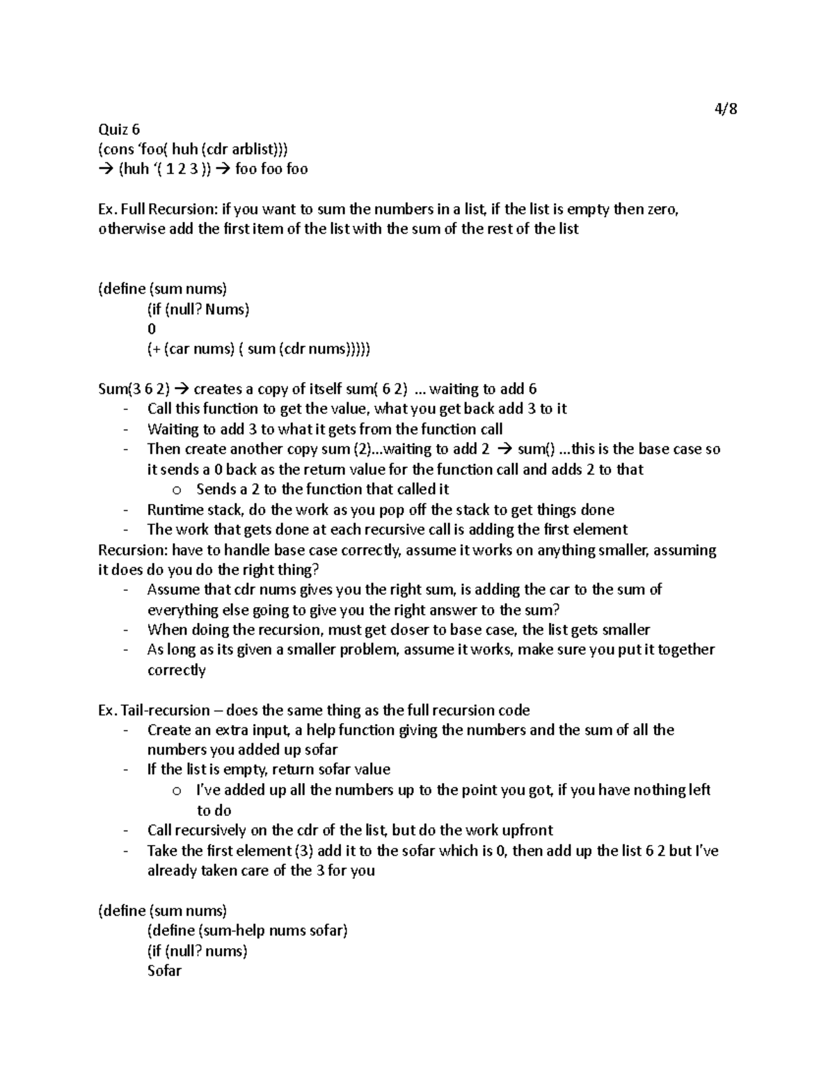 4:8 - Lecture Notes - 4/ Quiz 6 (cons ‘foo( huh (cdr arblist))) (huh ...