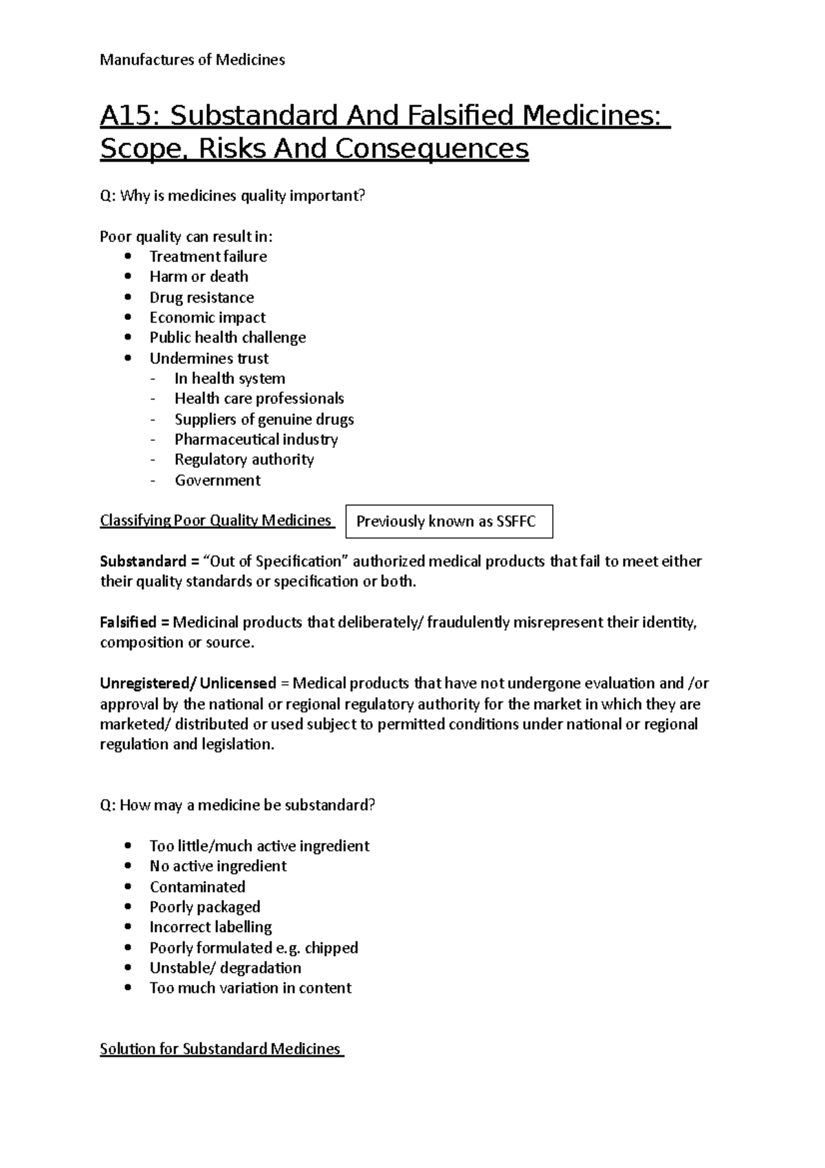 A15 - Lecture notes on py266 - Manufactures of Medicines A15 ...