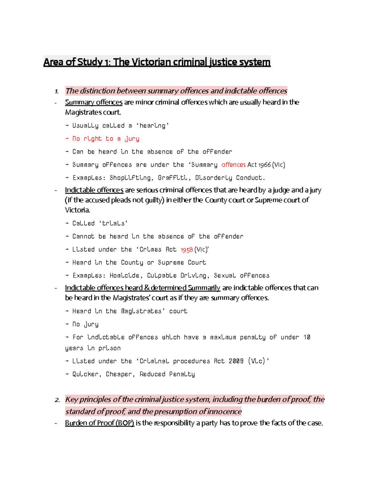 Legal study design notes - Area of Study 1: The Victorian criminal ...