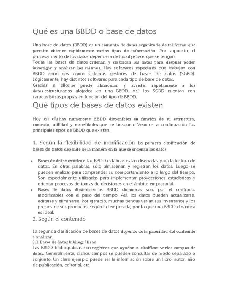 Definición y tipos de BBDD | PDF | Bases de datos | Datos