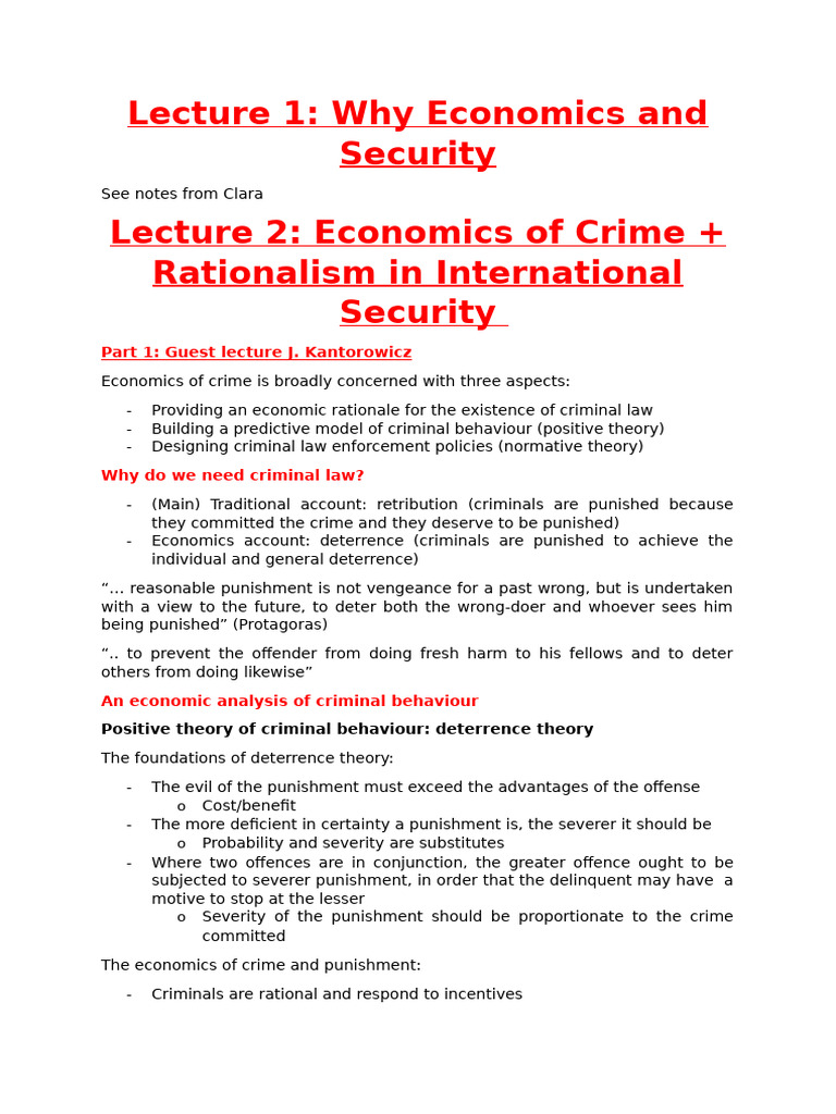 Lecture Notes Economics of Safety and Security | PDF | Behavioral ...
