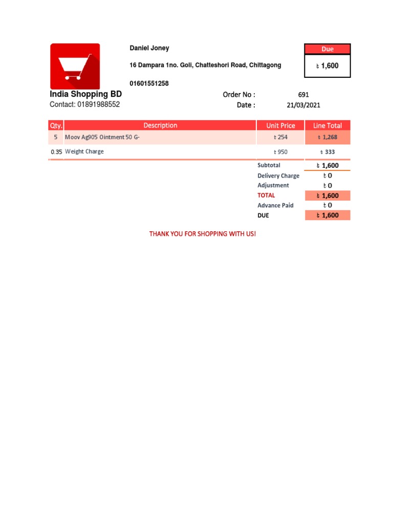 India Shopping BD - Invoice 0691 | PDF