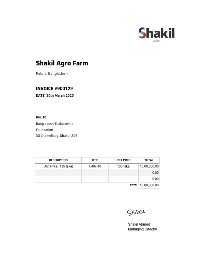 Invoice for Bangladesh Thalassemia Foundation | PDF