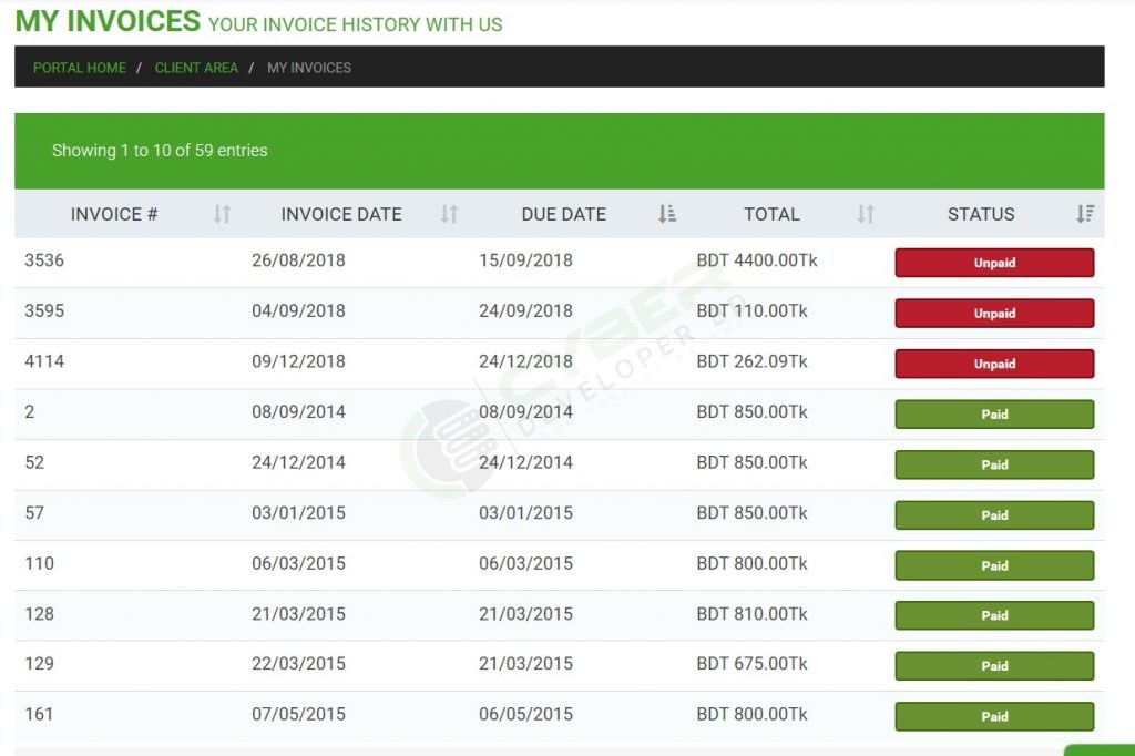 pay due invoice 2 - Cyber Developer BD Support Portal
