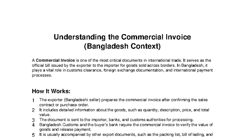 Understanding the Commercial Invoice in Bangladesh: Key Insights - Studocu