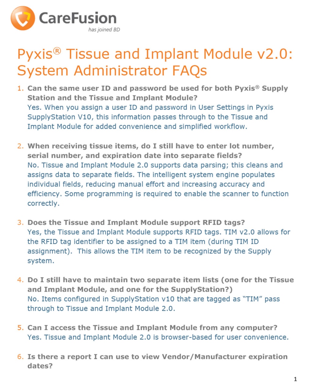 BD Pyxis™ Tissue and Implant Module v2.0: System Administrator FAQs ...