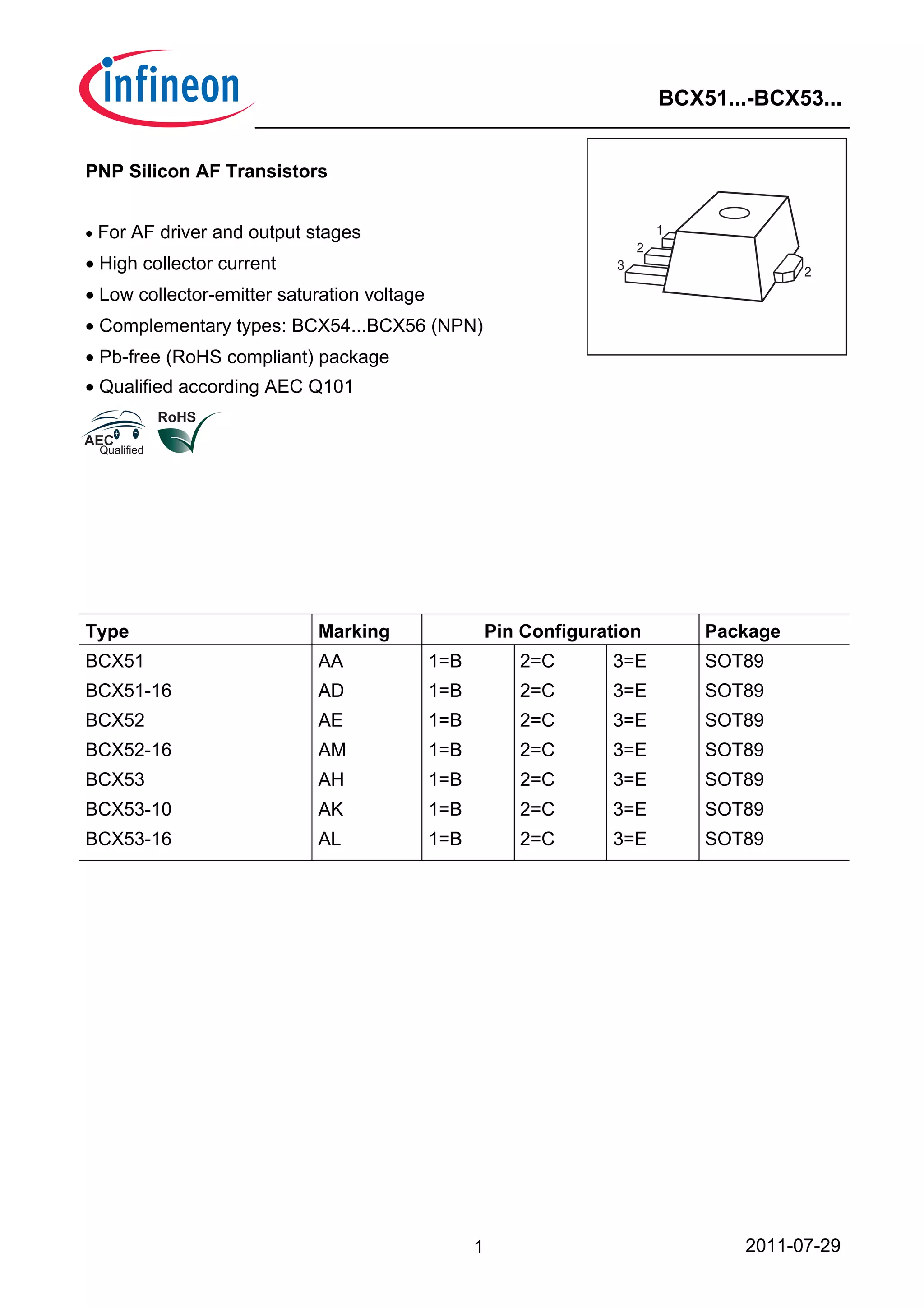 Original PNP Transistor BCX53-16 80V 1A AL SMD Code SOT-89 New | PDF