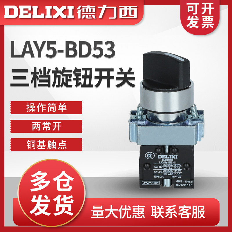 德力西自复式旋钮开关自复位三档旋钮LAY5-BD53三档开关_虎窝淘