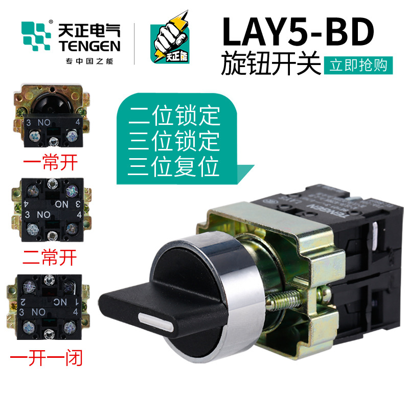 TENGEN天正 LAY5-BD21 BD25 BD33 BD53旋钮开关 NP2旋转按钮开关_虎窝淘