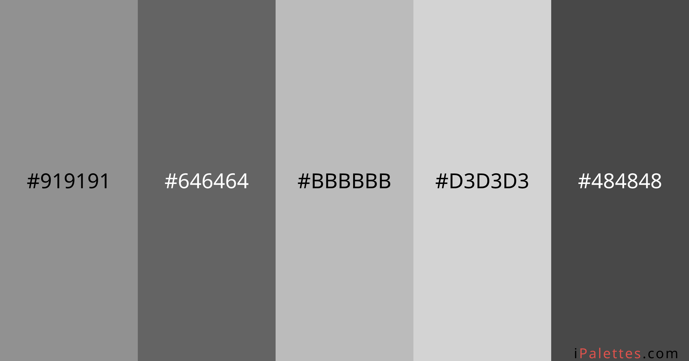 Gray Color Palette and colors #919191 #646464 #bbbbbb #d3d3d3 #484848 ...
