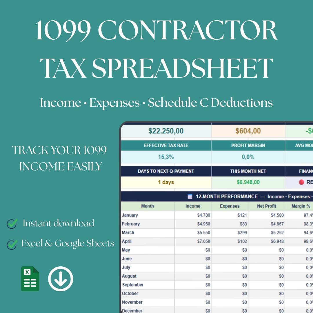 1099 Feuille de calcul des impôts des entrepreneurs | Suivi des revenus ...