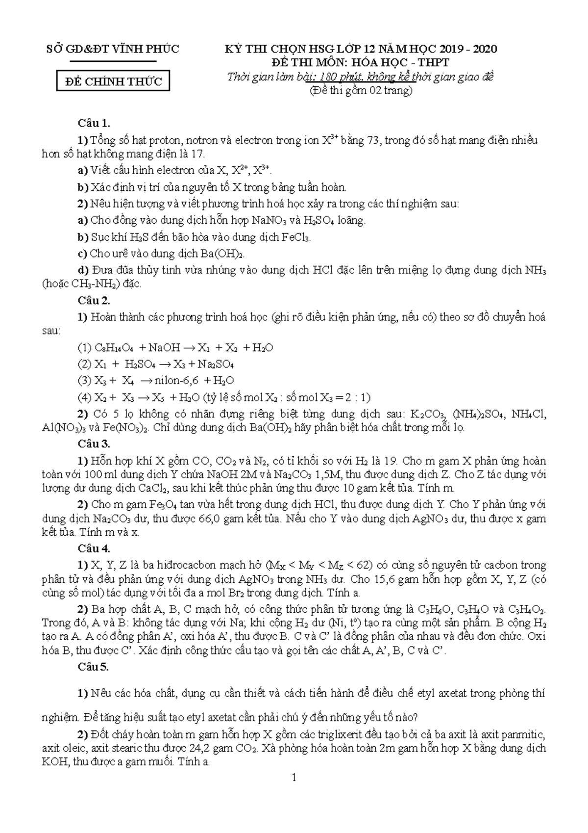 Vinh Phuc 2019 2020 - Bdbdbd - SỞ GD&ĐT VĨNH PHÚC KỲ THI CHỌN HSG LỚP ...