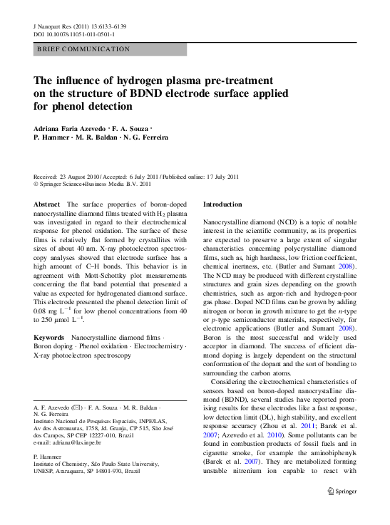 (PDF) The influence of hydrogen plasma pre-treatment on the structure ...