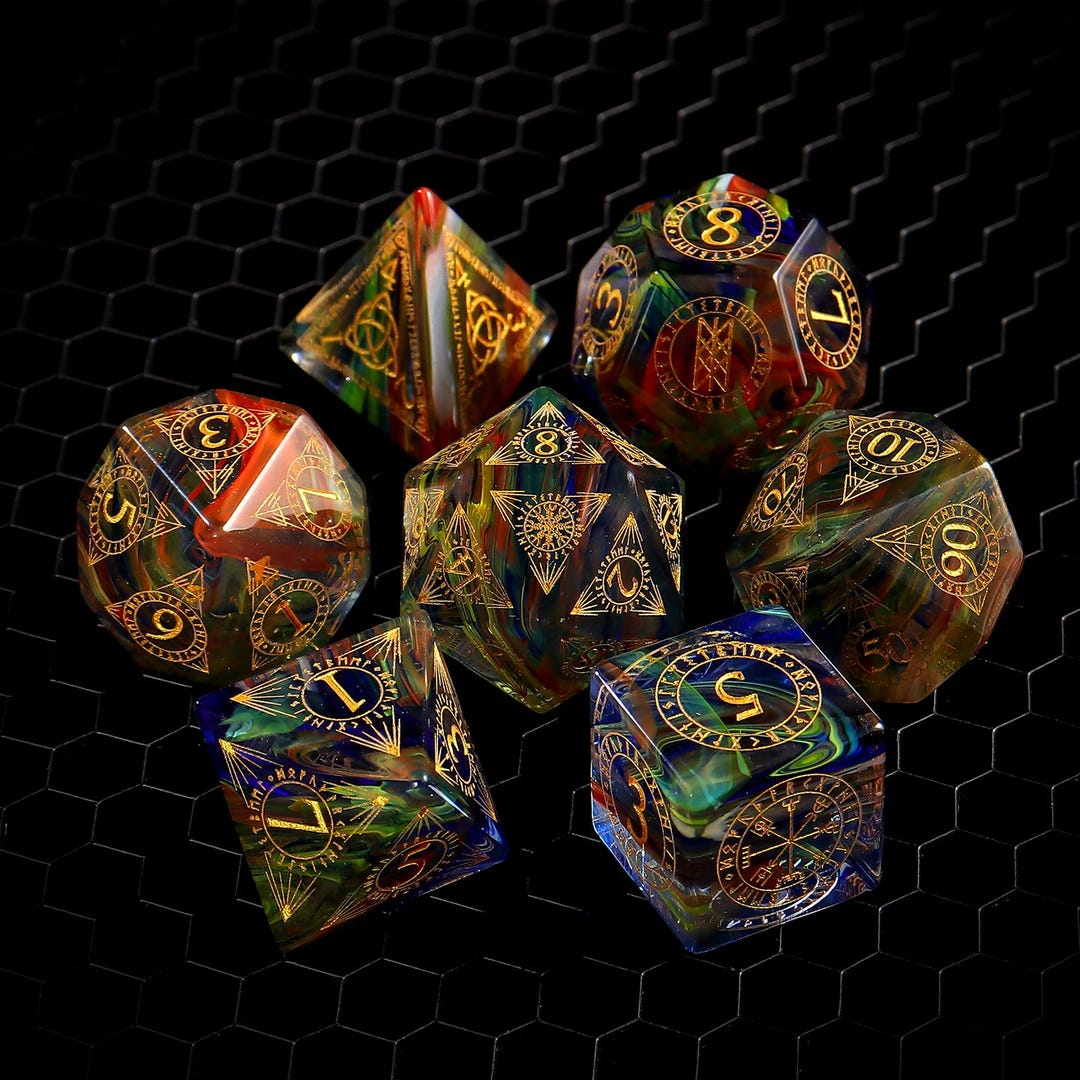 Viking Dnd Dice Set | Stained Glass Dice | Rainbow Glass Dice| Crystal ...