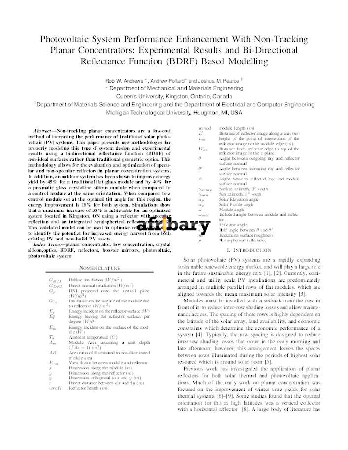 Photovoltaic System Performance Enhancement With Non-Tracking Planar ...