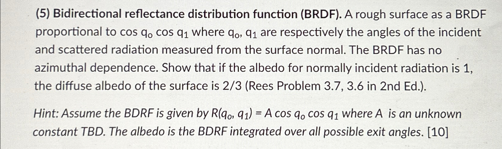 Solved (5) Bidirectional reflectance distribution function | Chegg.com