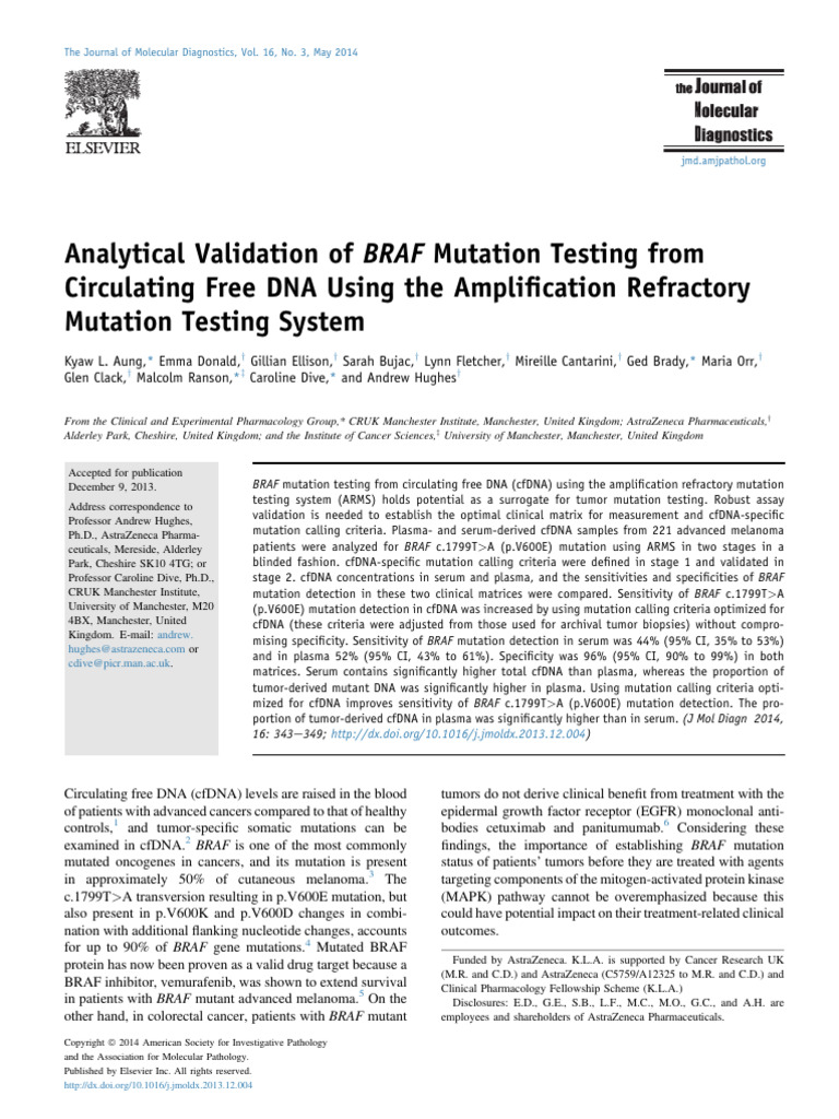 Analytical Validation of BRAF Mutation Testing From Circulating Free ...
