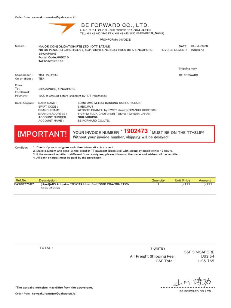 Be Forward Co., LTD.: Pro-Forma Invoice | PDF