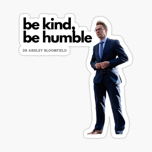 "Dr Ashley Bloomfield - Be kind, be humble" Sticker for Sale by ...