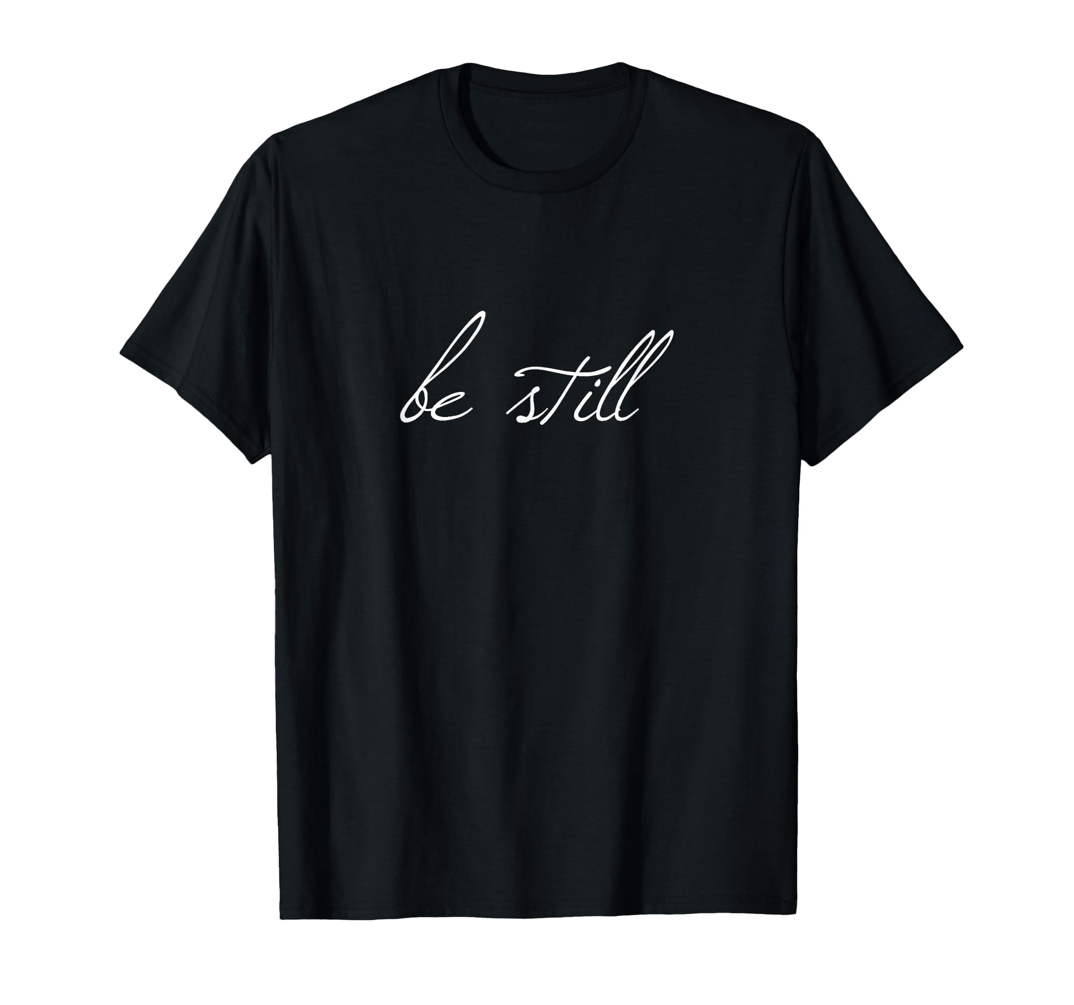 Black Script "Be Still" Christian Bible Verse Psalm 46:10 T-Shirt for ...