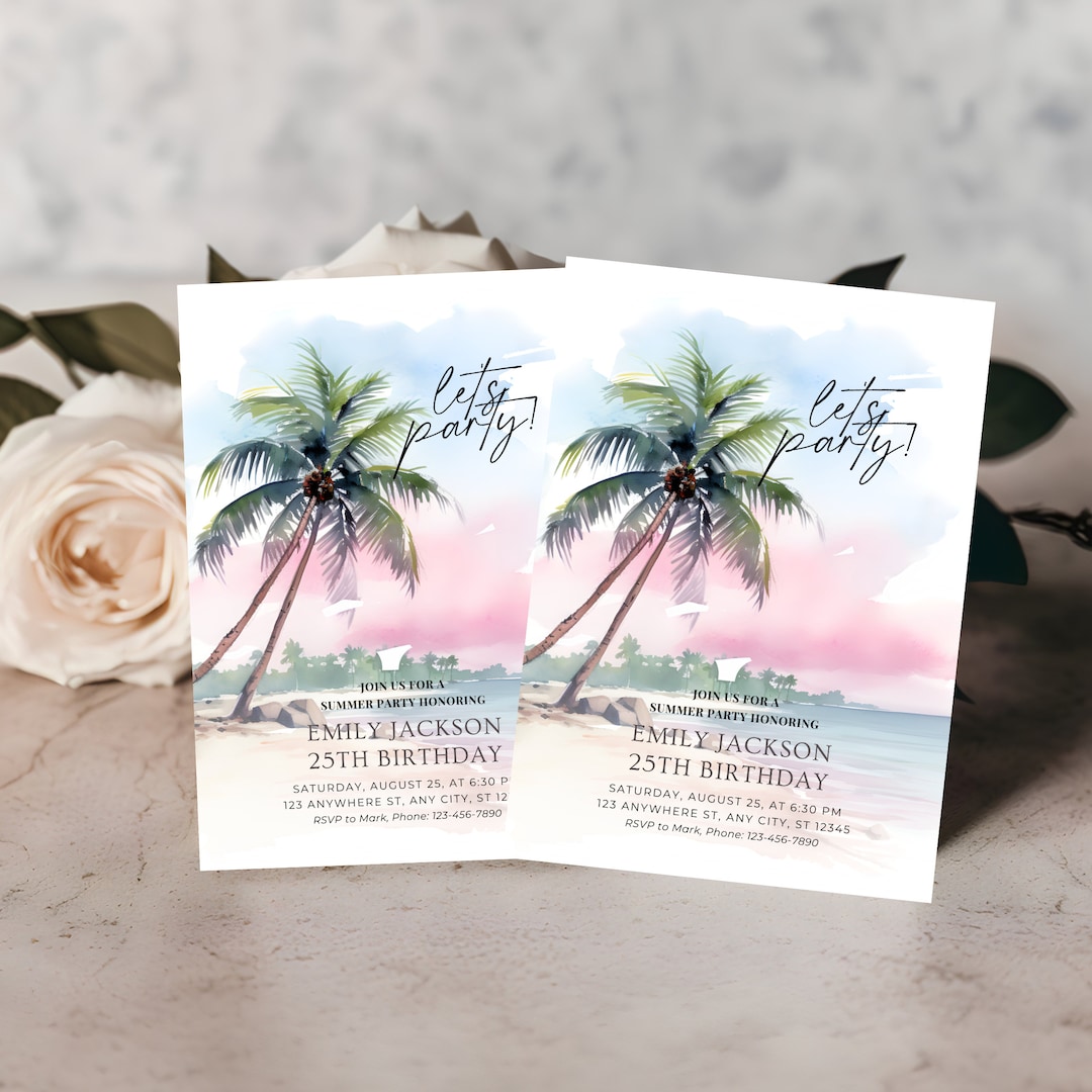 Beach Birthday Party Invitation Template for Men Women Kids, Summer ...