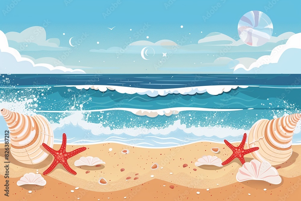 There is a cartoon of a beach with shells and starfishs generative ai ...