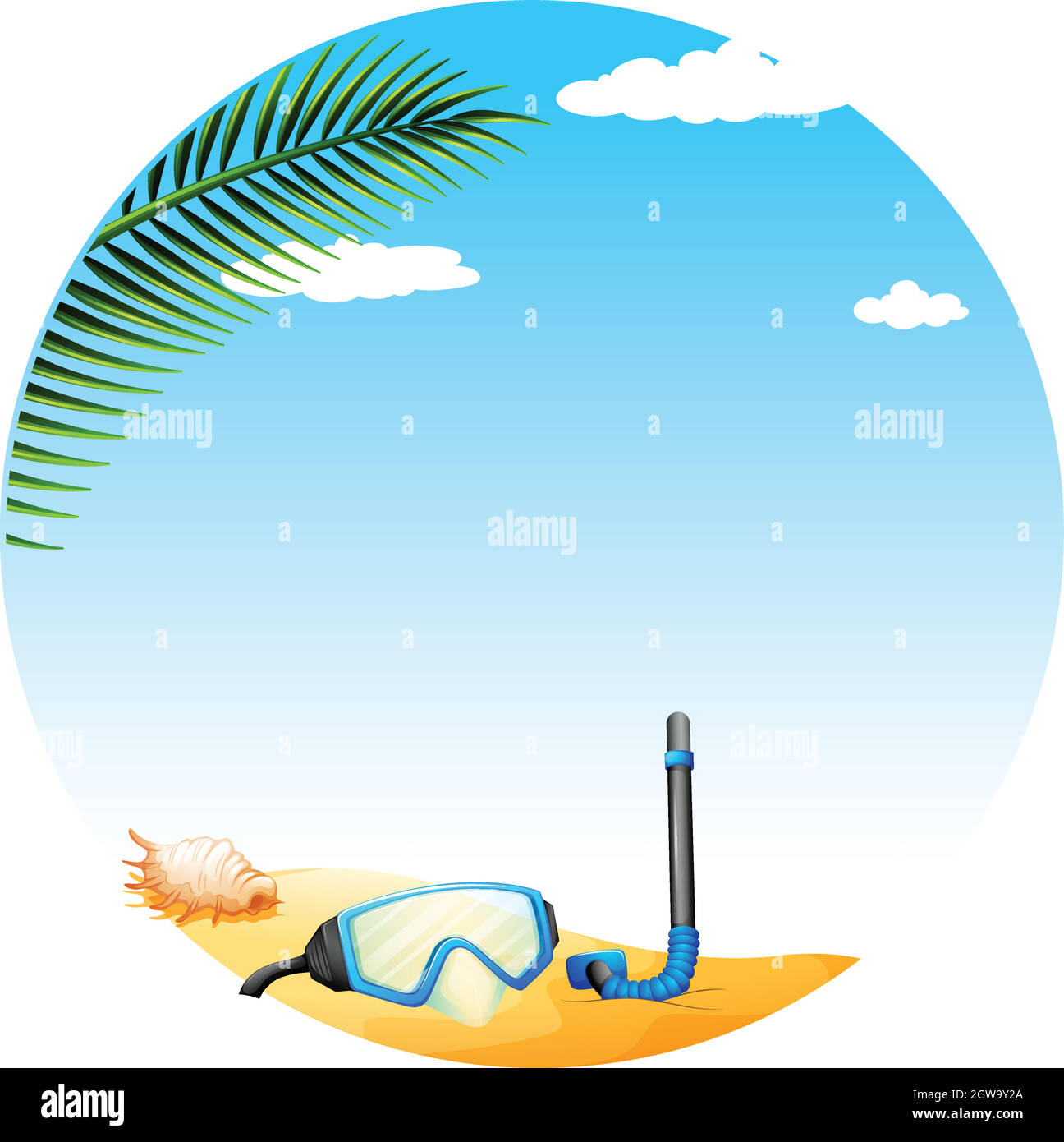 Premium Vector | A cartoon illustration of a beach with a beach scene ...